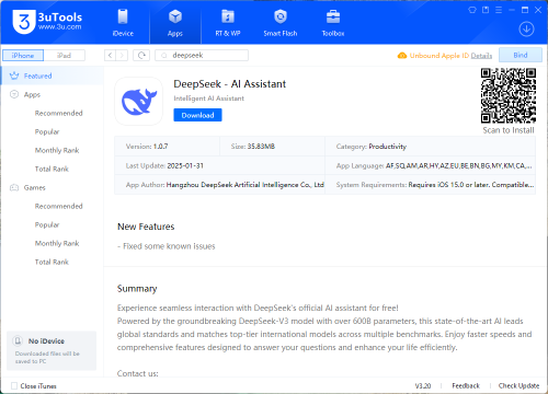 天娱数科海外挪动使用分发平台3utools已上架Dee